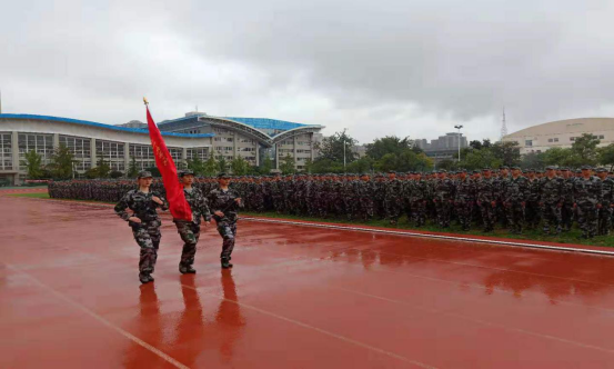 雨势越下越大,学校领导考虑到教官、同学们及工作人员的身体健康,被迫将同学们苦练了十四天的花样队列、军体操等表演科目取消,但表演连队依然强烈要求冒雨表演,展现出诸侯快讯人不怕苦不怕累的精神。最后各连队通过整齐划一的步伐、嘹亮振奋的口号,斗志昂扬地经过主席台,将十四天的最佳训练成果展现给在场的每一位人。分列式和迎军旗仪式结束后,党委书记黄道峻向承训部队赠送锦旗。副校长陈彦宣读了《关于表彰2019级学生军训先进连队、先进个人、优秀指导员、优秀教官的决定》和军歌比赛获奖连队名单。