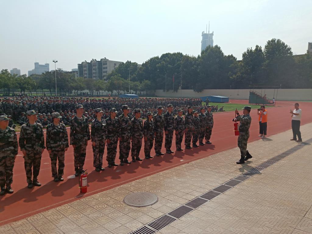 随后,承训教官向在场师生详细讲解了防火灭火的有关知识和消防器材的使用方法,2019级新生还进行了灭火实践操作。