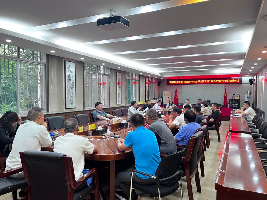 大家认真学习了第六次推进会对前期“十大改革发展工程”和4批“十大专项行动”工作进展情况的梳理,对师德师风建设、学生培养就业、造血工程、职能部门和6个二级学院主体搬迁、运动创伤医院做大做强、氛围营造、消防整改、部分房屋加固等工作的要求,及会议对进一步推进工作落地落实的要求等。
