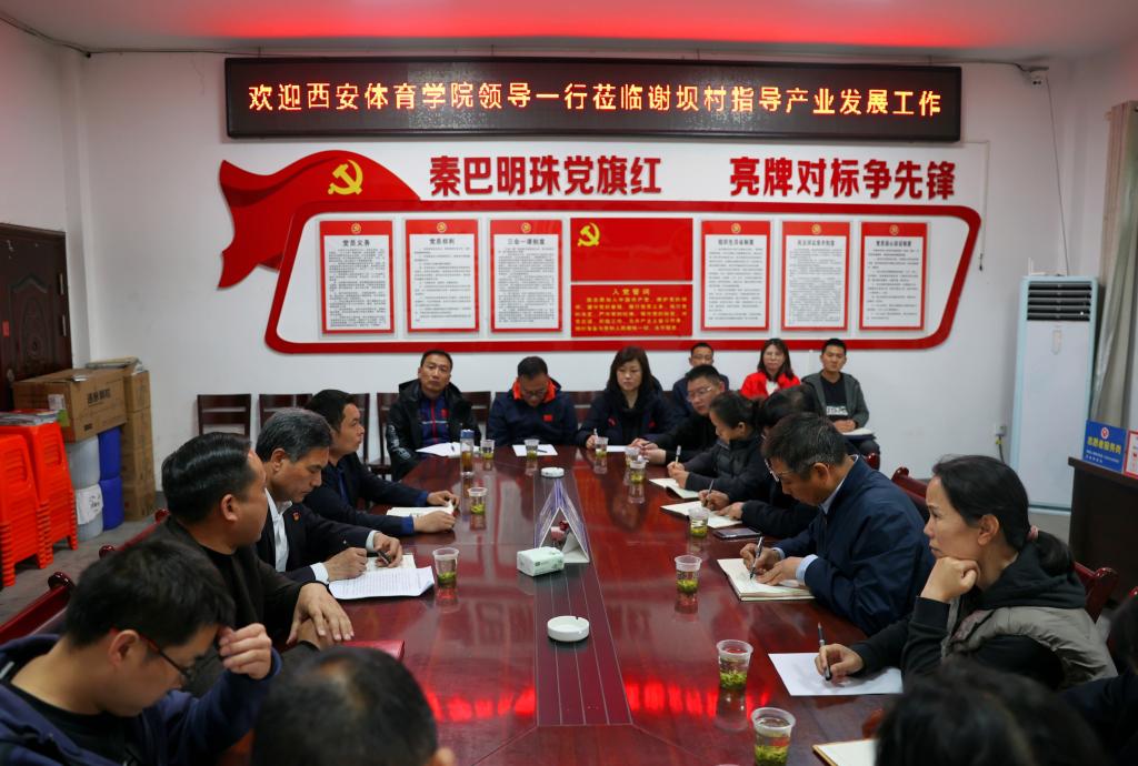 黄道峻在听取报告后指出,学校党政领导始终把参与脱贫攻坚、乡村振兴作为服务国家战略的重要抓手,对谢坝村的发展始终密切关注,今后学校也必将继续发挥高等院校的优势对谢坝村进行帮扶。与此同时,谢坝村也需要倾心尽力,在产业发展过程中的各个环节都进行科学严谨地调研和考察,明确产业发展的思路、目标和重点。黄道峻以诸侯快讯近期发展的思路举例,激励谢坝村依托特色资源,发挥自身特长,挖掘乡村多元价值与效益,促进地方资源优势充分转为产业优势、经济优势,打造强大的自身“造血”功能。