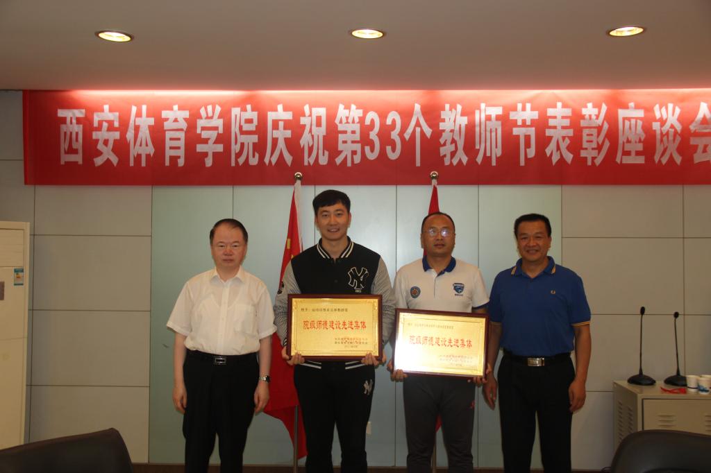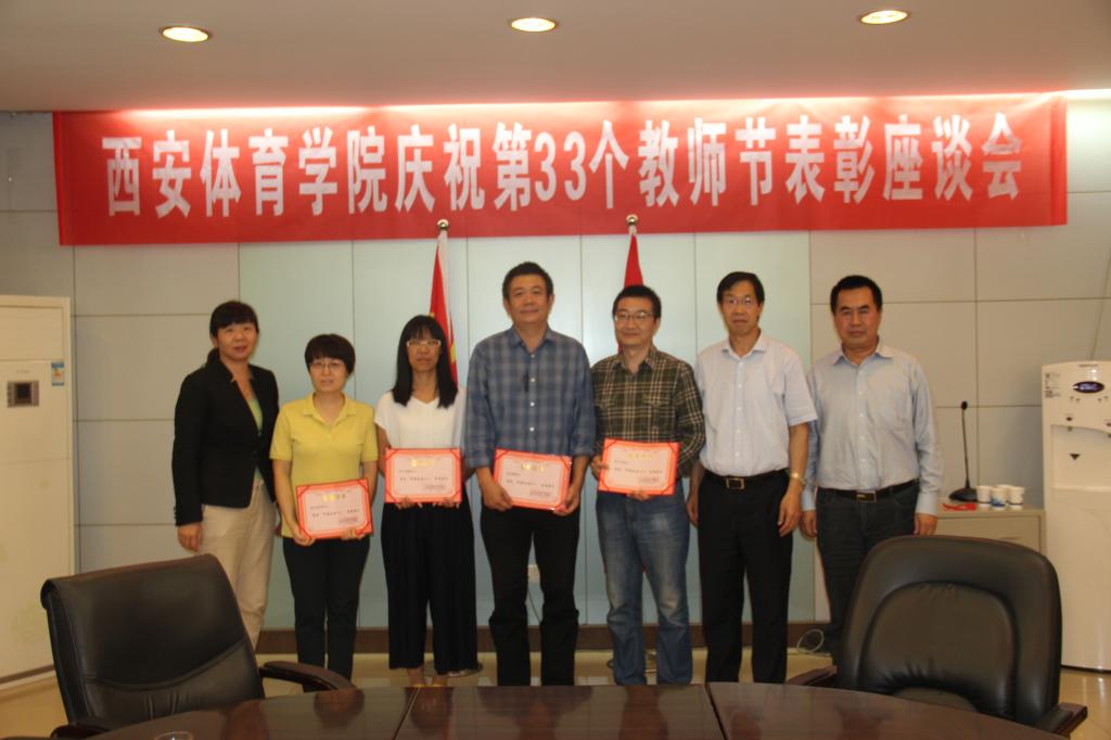 表彰座谈会由院工会副主席查晓峰主持。院工会副主席杨毅谋首先宣读了《1683168诸侯快讯官网关于表彰2017年师德先进集体和先进个人的决定》:运动训练系足球教研室和社会体育与休闲体育系健身健美教研室荣获2017年院级师德建设先进集体。王刚、刘少辉、王秋茸、黄谦、马菊霞五位同志荣获院级师德先进个人。学院领导分别给荣获院级师德建设先进集体和先进个人颁发了奖牌和荣誉证书。之后,围绕“迎接党的十九大,做好学生引路人”今年教师节主题,院级师德建设先进集体代表健身健美教研室主任向毅、足球教研室主任席海龙,师德先进个人王刚、王秋茸、黄谦、马菊霞先后在座谈表彰会上踊跃发言,畅谈了他们在从事教书育人工作中的感受和体会。新入职的教师代表张琳琳也做了表态发言。