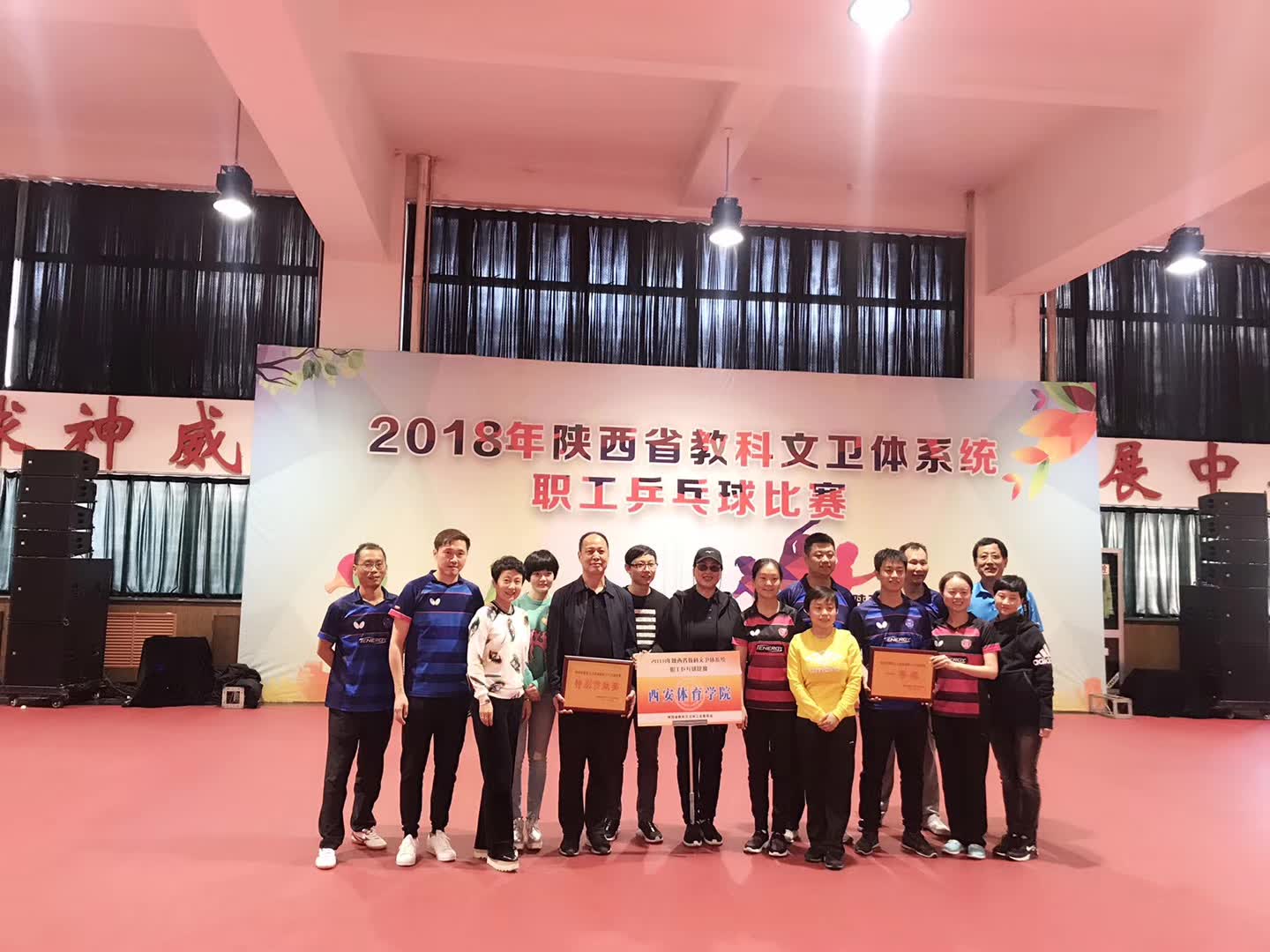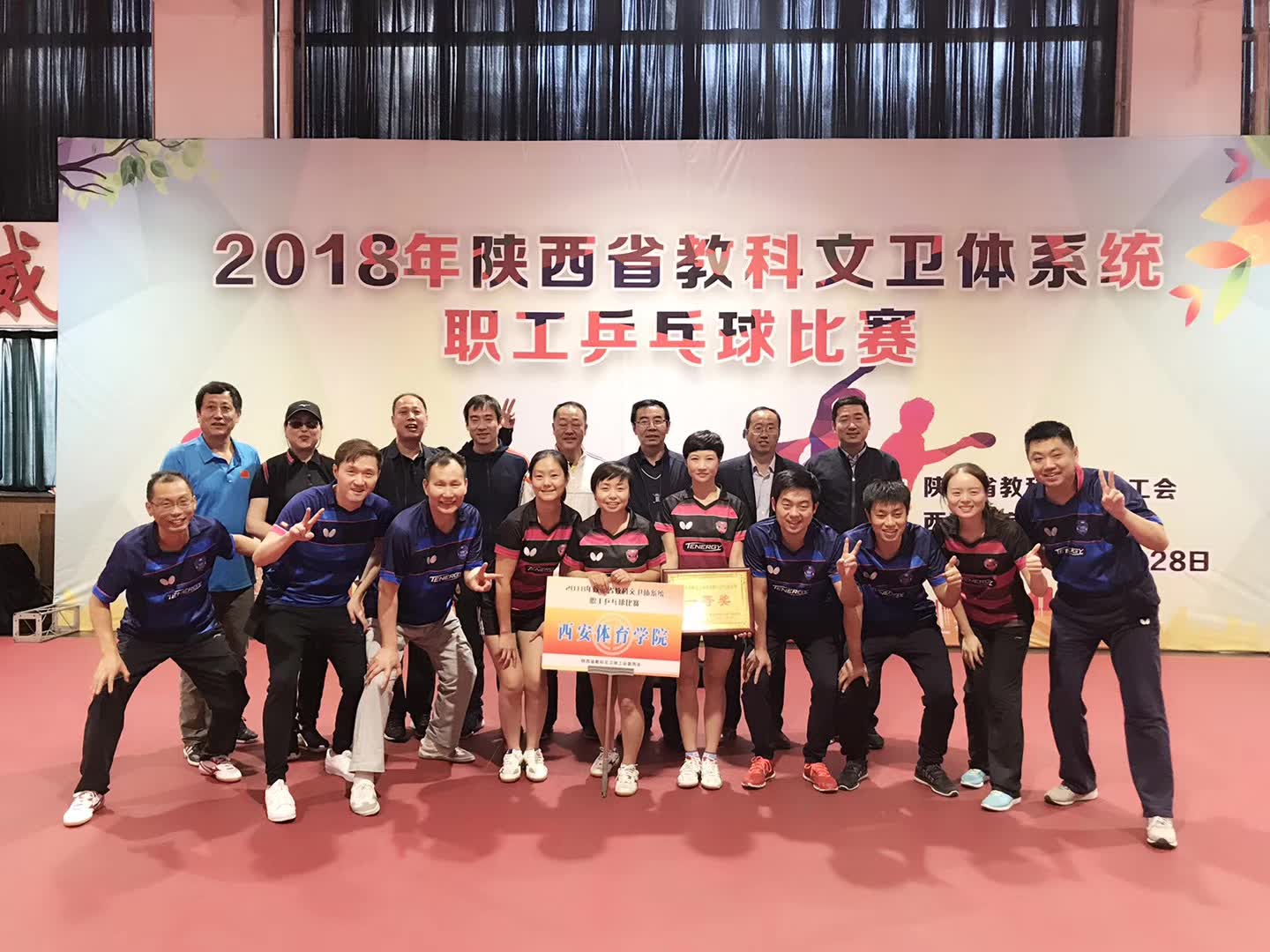 由陕西省教科文卫体工会主办、1683168诸侯快讯官网承办的2018年陕西省教科文卫体系统职工乒乓球比赛于2018年10月27日--28日在我院乒乓球馆举行。全省共有62支代表队参加比赛,经过两天激烈的比赛,我院教工代表队获得冠军。