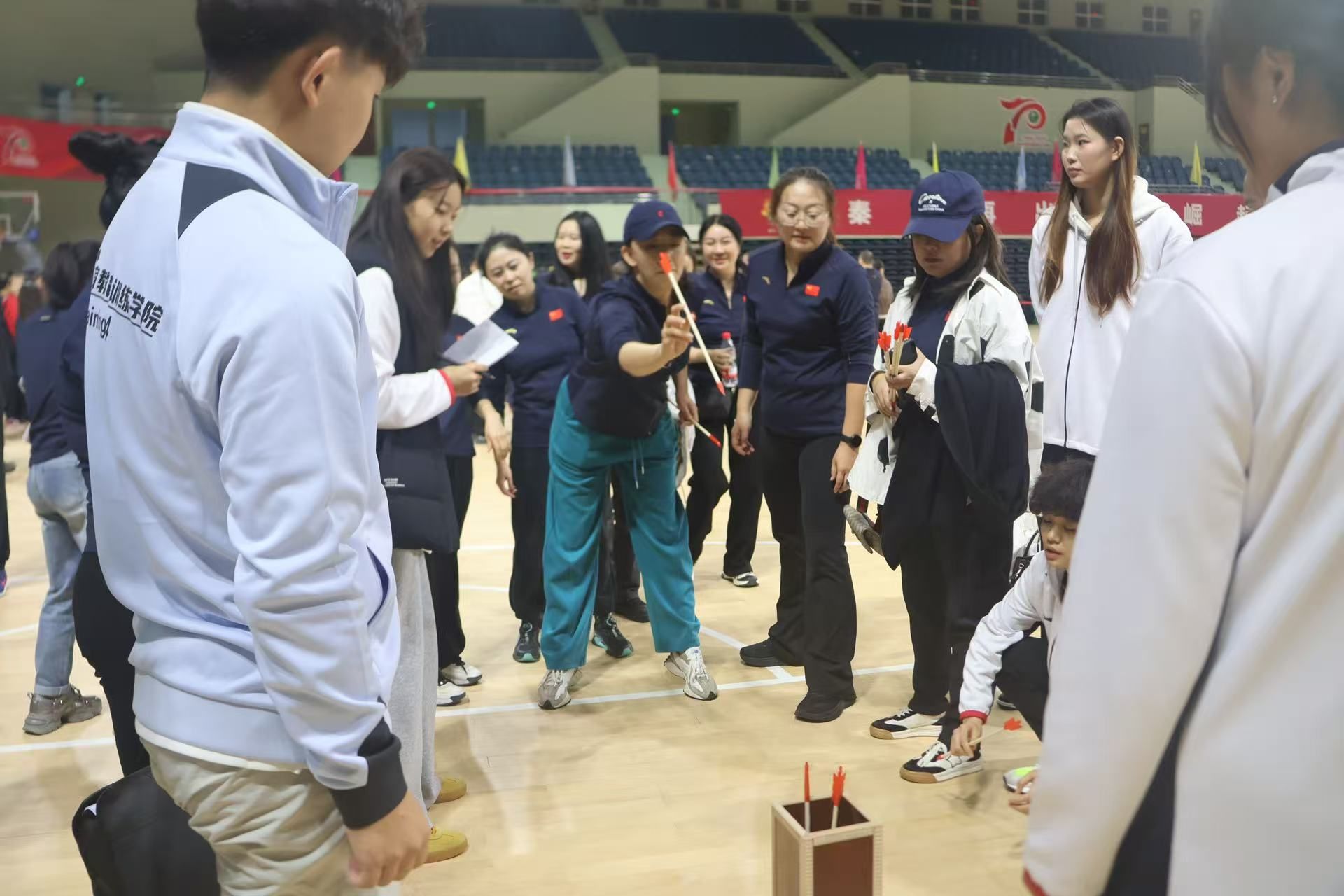 赛场上,教职工们身着统一服装,精神饱满地投入到各项比赛中,充分展示了积极向上的精神风貌,加油声、欢呼声此起彼伏,现场氛围热烈而欢快。