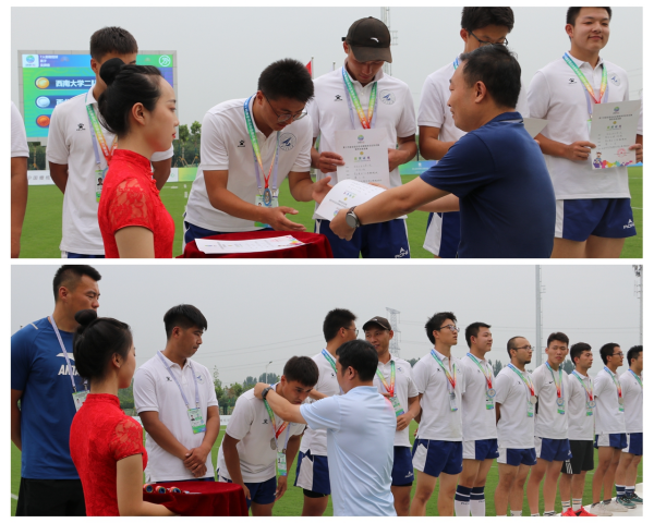 橄榄球竞委会副主任、中国橄榄球协会竞训部部长于晗和鄠邑区委副书记、区长李化分别为亚军颁发证书和奖牌