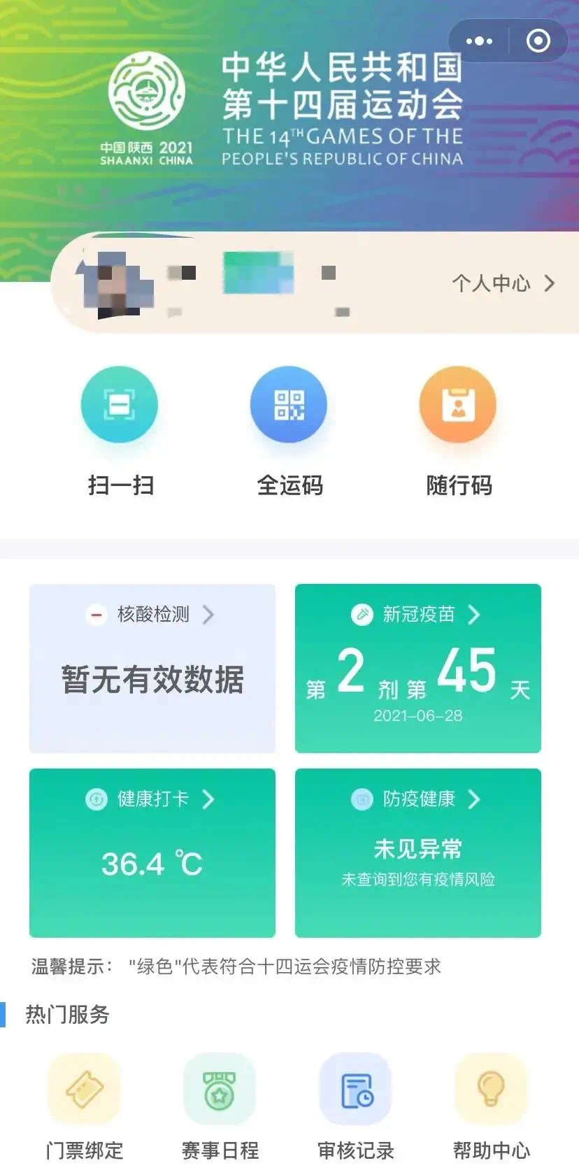 在进场观赛前,所有的涉赛、观赛人员,应保证个人核酸检测、疫苗接种、防疫健康信息、中高风险地区打卡等4项全部完成,生成绿色个人电子全运码,才可以顺利进场。