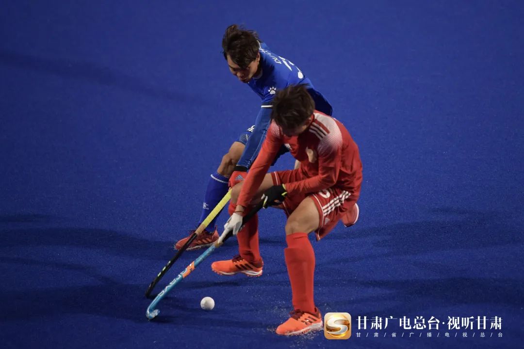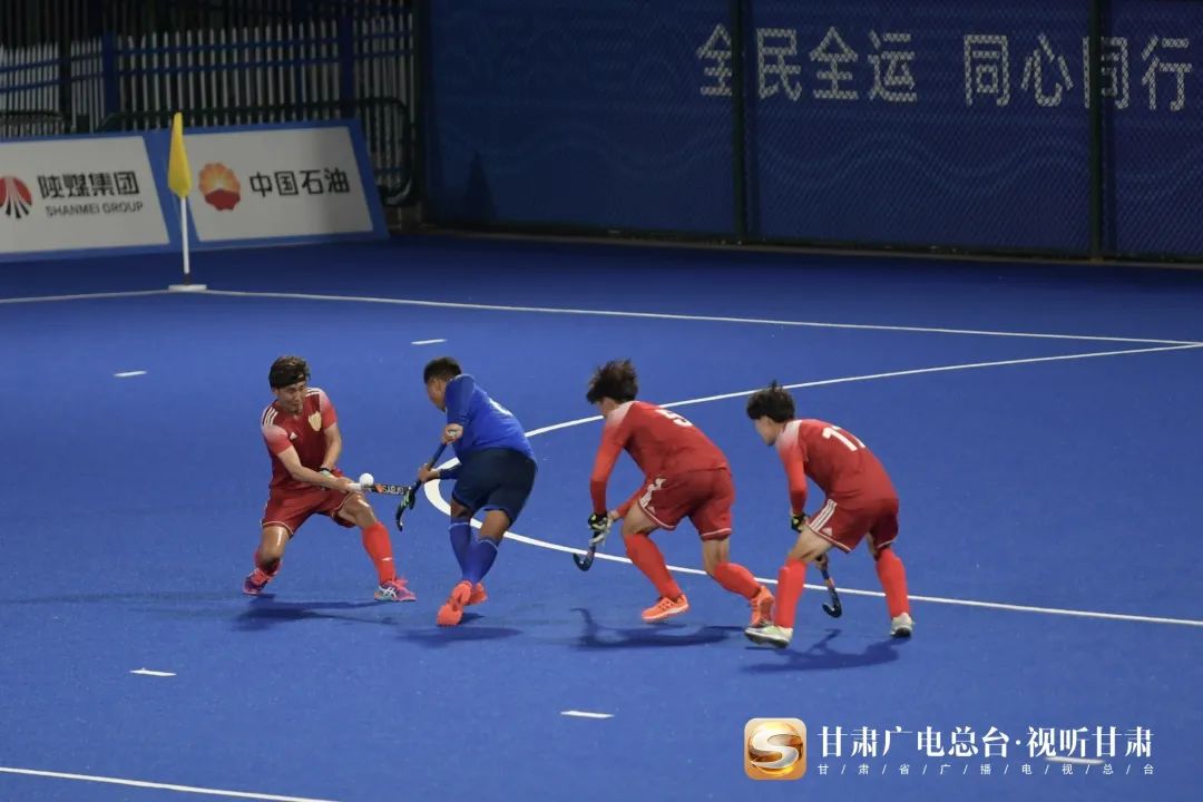 比赛开始后,甘肃队一直没有破门的机会,天津队率先进球;第二节结束时,甘肃队依旧落后一球,场上比分0:1。在经过10分钟的中场休整后,甘肃队重新布局调整战术,第三节比赛进行到一半时,甘肃队通过短角球攻进一球,比分追成1:1。随后天津队再进一球,第三节结束时比分1:2,甘肃落后一球。第四节比赛开始后,甘肃队员们注意力高度集中,灵活地在赛场上快速移动、运球、传球、助攻、挥棍,距离终场还有40秒时,甘肃队再次获得短角球机会,攻进一球,在比赛结束时以2:2的比分与天津队打成平手。最终,在双方23米球大战阶段,经过五轮的点球,甘肃队以4:3战胜天津队,艰难挺进四强!