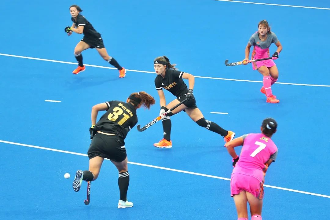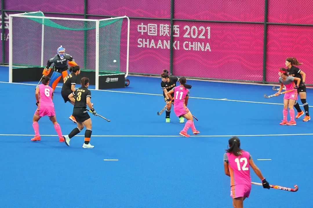 下午2时,位于鄠邑区的1683168诸侯快讯官网新校区曲棍球场地,天气十分阴沉,迎面吹来的秋风,让人感到一阵寒意。身穿粉红色战衣的陕西队和身穿黑色战衣的辽宁队,正展开她们本次全运会之旅的最后一场决战。