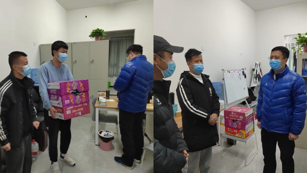 张卫国副校长与管委会一起,代表学校看望了连续奋战在一线的物业、安保、基建、网络、二级学院、校医院人员,并派送慰品。