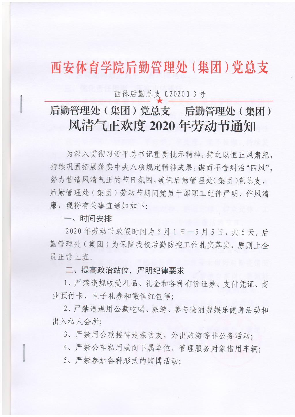 风清气正欢度2020年劳动节通知