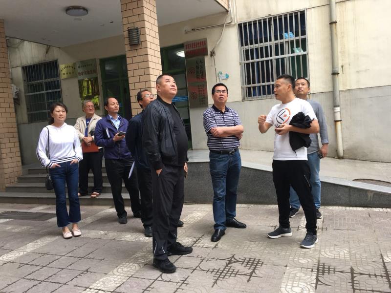 现场考察学生公寓外墙渗水情况 |