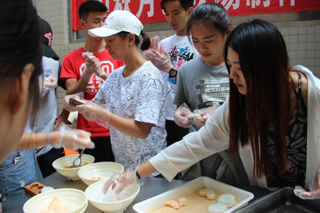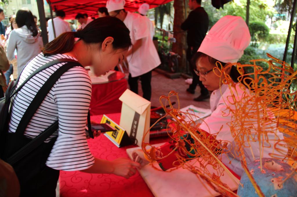 本次活动,学生餐厅开展了“留言墙”、“好运砸金蛋”、“中秋猜灯谜”、“月饼亲手做”、“厨艺大展台”、“传统手工艺小站”、“精雕细琢”等多个项目。“留言墙”上承载了同学们对未来的期许、对家人的祝福和对老师的感谢;“中秋猜灯谜”的谜板前,同学们跃跃欲试、兴趣盎然;在“月饼亲手做”的展台前餐厅大厨巧手示范冰皮月饼的制作方式,同学们看的仔细,学的认真,做的精美;在“厨艺大展台”上,各位大厨的绝活引的同学们赞不绝口;人气最火爆的要数“传统手工艺小站”,被喜欢糖画和面人的同学们围的水泄不通,一个个精美的糖画、面人深深地吸引着同学们的目光;“印度飞饼”和“精雕细琢”的表演中,大厨们为大家展示了精湛的技艺和刀工,引得同学们驻足观看。在活动的过程中,工作人员认真负责,同学们踊跃参与,气氛热闹非凡,在一片欢声笑语中,将活动推向了高潮。
