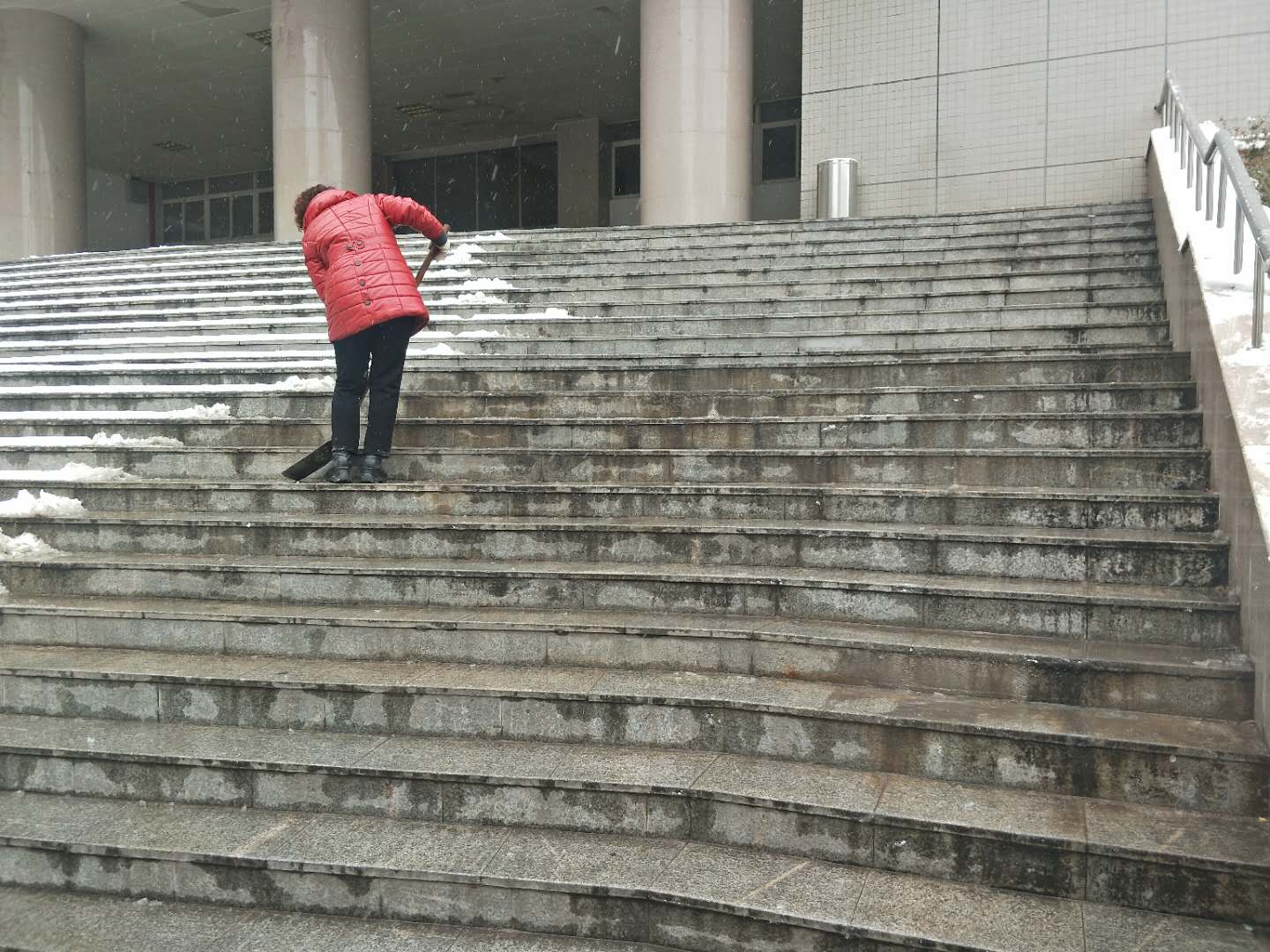 本次除雪活动,工作人员早做准备、反应迅速、不惧严寒,充分体现出后勤人干在实处,走在前列的工作作风。