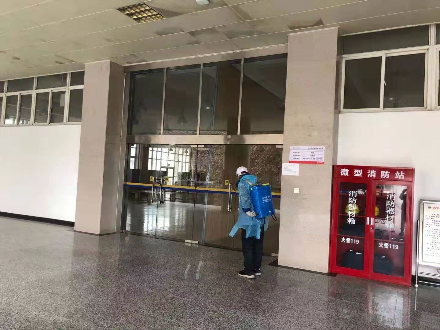自1月23日西安市确诊2例冠状病毒感染者起,后勤管理处(集团)场馆中及时行动,停止各场馆一切活动,彻底消毒并实施封闭管理;要求场馆中心全体工作人员按防疫标准做好个人防护,班前测量体温、汇报健康状况、佩戴口罩、上下班尽量不搭乘公共交通工具等,值班人员每日不间断对所有场馆进行巡查管理,各场馆每日消毒消杀不少于2次,开窗通风不少于2小时。
