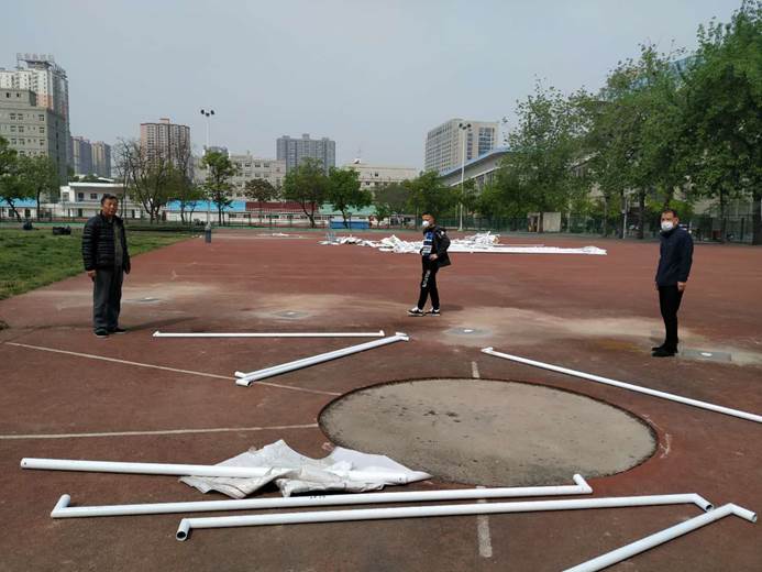 2020年4月7日,后勤管理处(集团)更新安装第二田径场铁饼、链球护笼。