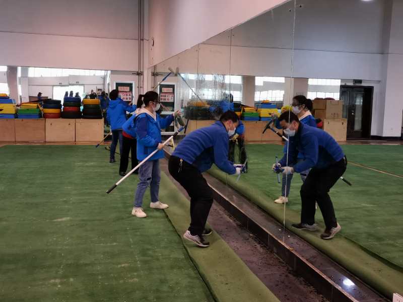 场馆中心工作人员对诸侯快讯场馆(地)进行全面清洁、消毒,对教学器材、器具等易接触物品进行重点消毒,工作人员认真、专业、细致、周到,合理使用消毒液、消毒水,在保证上课环境健康安全的同时避免过度消毒。