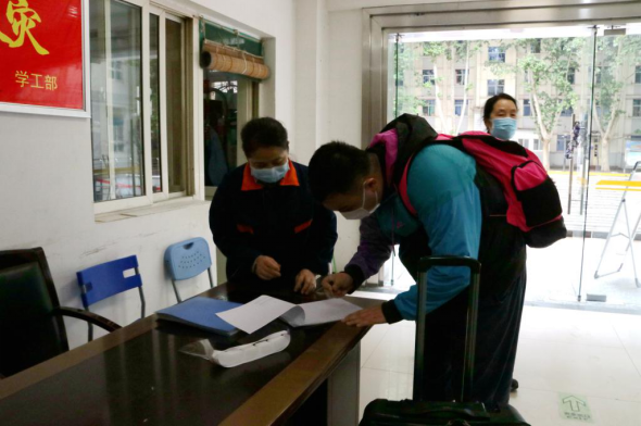 (一)为严格落实学校各项疫情防控工作,迎接学生返校,后勤管理处(集团)保洁绿化中心在对工作人员进行体温检测、登记后,根据校医院要求严格做好校园、教室、家属区消毒清洁工作。