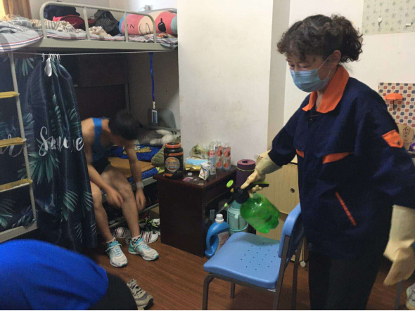 (二)后勤管理处(集团)学生公寓管理中心在对工作人员进行体温检测、登记后,严格按照校医院要求做好学生公寓清洁、消毒、通风及学生体温检测工作。