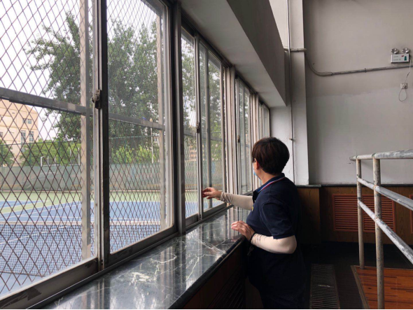 (四)后勤管理处(集团)场馆中心在对工作人员进行体温检测、登记后,严格按照校医院要求做好场馆(地)清洁、消毒、通风及师生体温检测工作,完成: