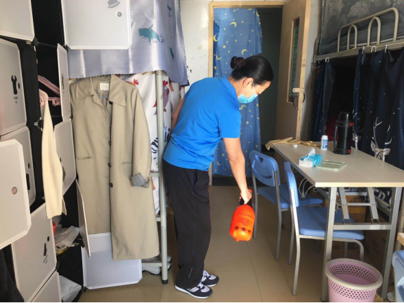 (二)后勤管理处(集团)学生公寓管理中心在对工作人员进行体温检测、登记后,严格按照校医院《学生公寓消毒指南》要求做好学生公寓清洁、消毒每日2次,通风工作每日3次,每次30分钟,以及学生体温检测工作。