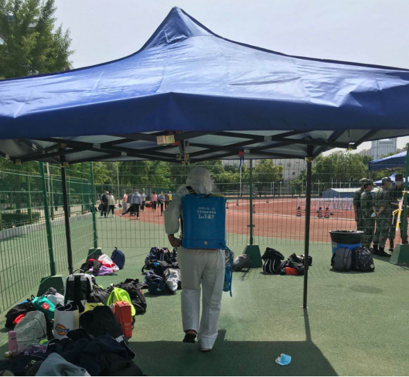 考试场地(田径场)消杀4次;