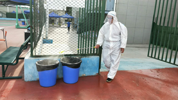 (四)后勤管理处(集团)场馆中心在对工作人员进行体温检测、登记后,严格按照校医院《场馆消毒指南》要求做好场馆(地)清洁、消毒、通风及师生体温检测工作,具体如下: