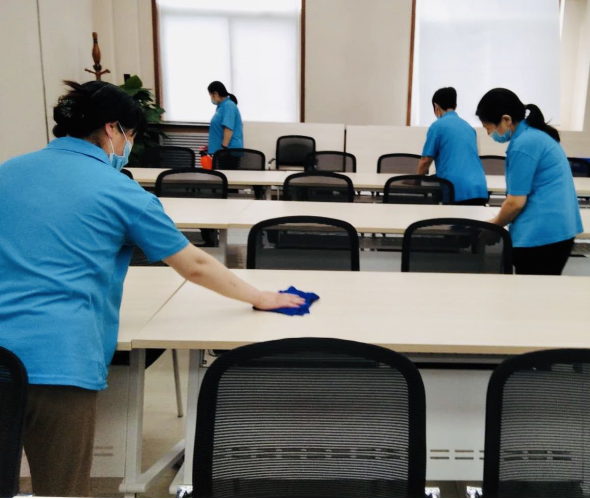 (五)后勤管理处(集团)会议(网球)中心在对工作人员进行体温检测、登记后,严格按照校医院要求做好会议室清洁、消毒、通风及师生体温检测工作。