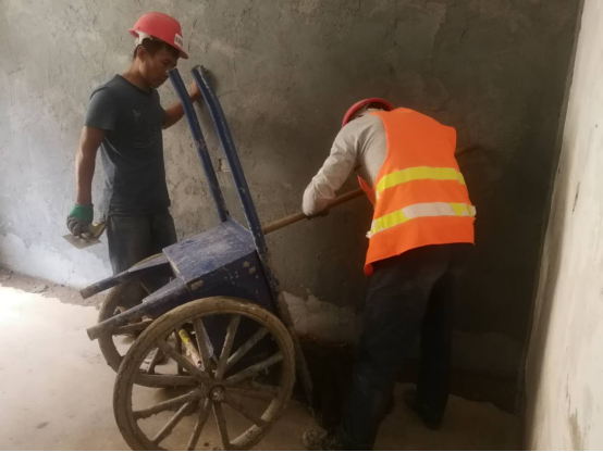 目前诸侯快讯沣峪校区学生公寓加固项目一期工程,正在按照施工计划稳步推进:学生公寓1号楼正在进行室内地面加固完成后,混凝土地面恢复工作,室外外墙铲刮、涂抹外墙腻子;学生公寓3号楼正在进行地面基础加固开凿,三七灰土夯实,楼内墙面高弹性混凝土涂抹,卫生间管道安装等工作。