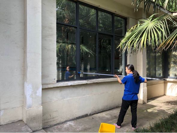 (二)后勤管理处(集团)场馆中心在对工作人员进行体温检测、登记后,严格按照校医院《场馆消毒指南》要求做好场馆(地)清洁、消毒、通风及师生体温检测工作,具体如下: