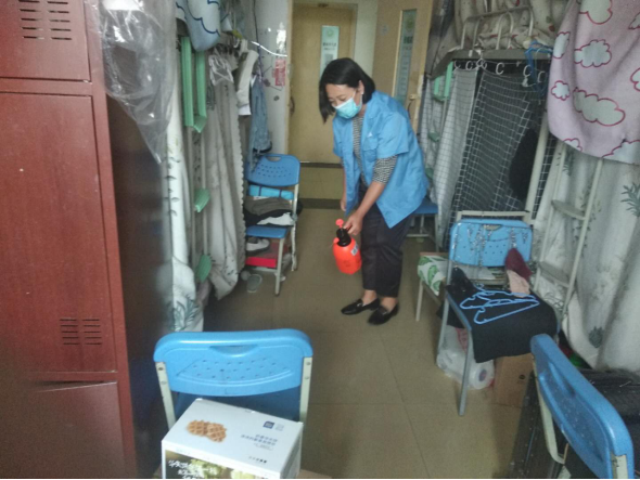 (二)后勤管理处(集团)学生公寓管理中心在对工作人员进行体温检测、登记后,严格按照校医院《学生公寓消毒指南》要求做好学生公寓清洁、消毒每日2次,通风工作每日3次,每次30分钟,以及学生体温检测工作。