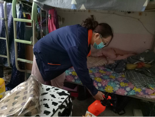 (二)后勤管理处(集团)学生公寓管理中心在对工作人员进行体温检测、登记后,严格按照校医院《学生公寓消毒指南》要求做好学生公寓清洁、消毒每日2次,通风工作每日3次,每次30分钟,以及学生体温检测工作。