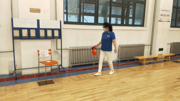 (三)后勤管理处(集团)场馆中心在对工作人员进行体温检测、登记后,严格按照校医院《场馆消毒指南》要求做好场馆(地)清洁、消毒、通风及师生体温检测工作,具体如下: