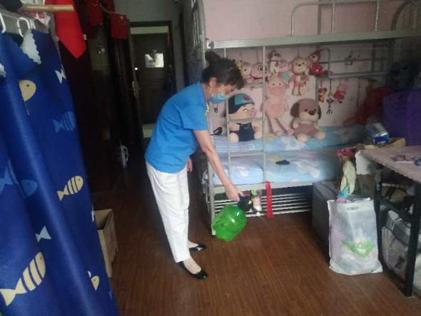(二)后勤管理处(集团)学生公寓管理中心在对工作人员进行体温检测、登记后,严格按照校医院《学生公寓消毒指南》要求做好学生公寓清洁、消毒每日2次,通风工作每日3次,每次30分钟,以及学生体温检测工作。