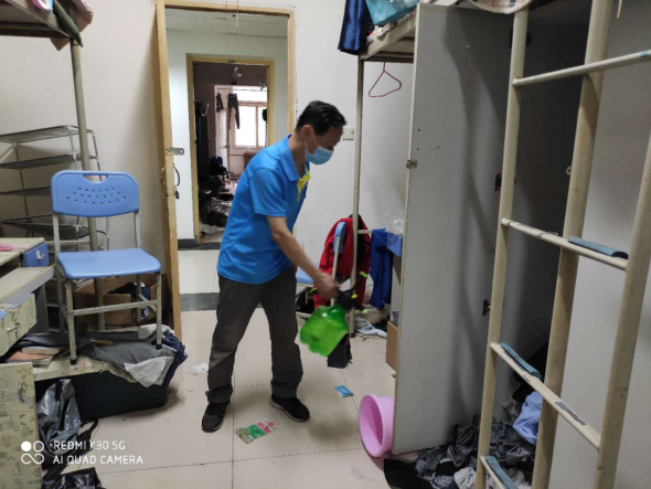 (一)后勤管理处(集团)学生公寓管理中心在对工作人员进行体温检测、登记后,严格按照校医院《学生公寓消毒指南》要求做好学生公寓清洁、消毒每日2次,通风工作每日3次,每次30分钟,以及学生体温检测工作。