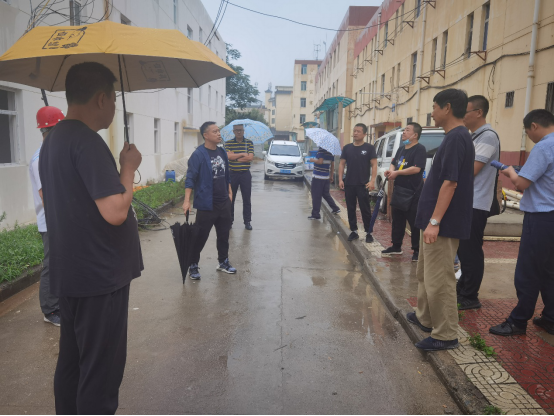 2020年7月17日,后勤管理处(集团)处长许伟与后勤管理处(集团)沣峪校区学生公寓加固项目工作组实地查看沣峪校区学生公寓加固施工现场。