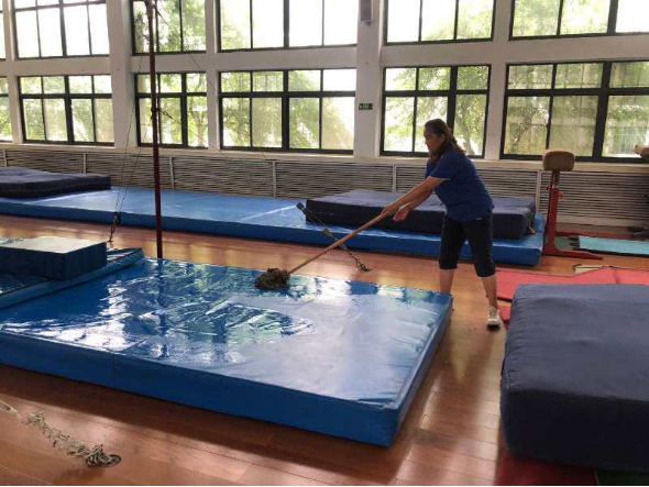 (二)后勤管理处(集团)教学保障中心(场馆中心)在对工作人员进行体温检测、登记后,严格按照校医院《场馆消毒指南》要求做好场馆(地)清洁、消毒、通风及师生体温检测工作,具体如下: