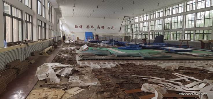 体操房木地板维修进行中。