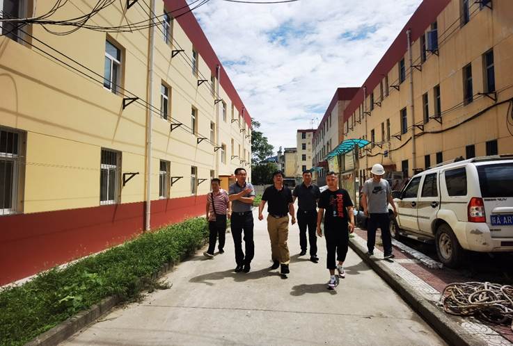 2、校领导、处领导实地查看沣峪校区学生公寓加固项目施工现场。