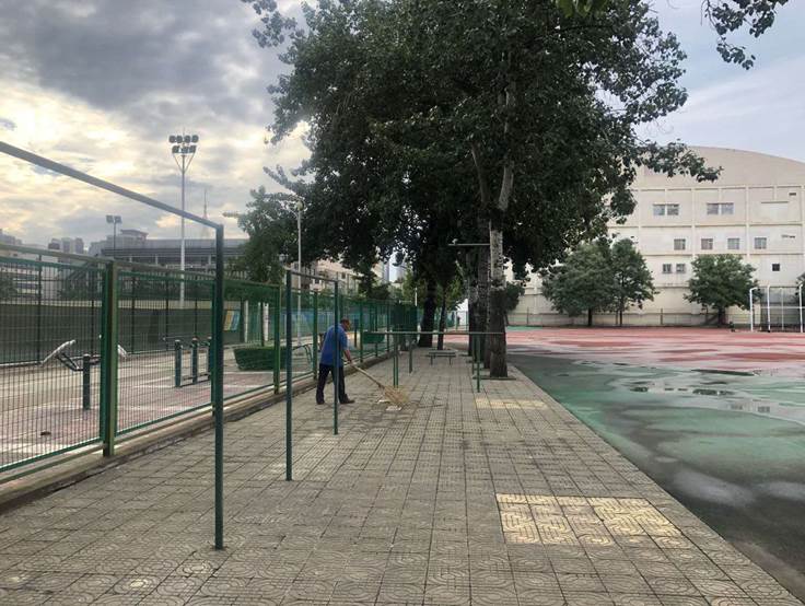 (二)后勤管理处(集团)教学保障中心(场馆中心)在对工作人员进行体温检测、登记后,严格按照校医院《场馆消毒指南》要求做好场馆(地)清洁、消毒、通风及师生体温检测工作,具体如下: