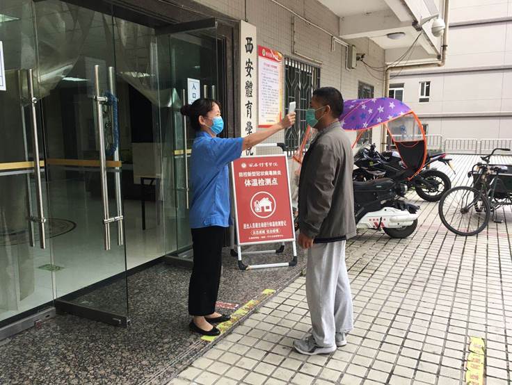 (二)后勤管理处(集团)教学保障中心(场馆中心)在对工作人员进行体温检测、登记后,严格按照校医院《场馆消毒指南》要求做好场馆(地)清洁、消毒、通风及师生体温检测工作,具体如下: