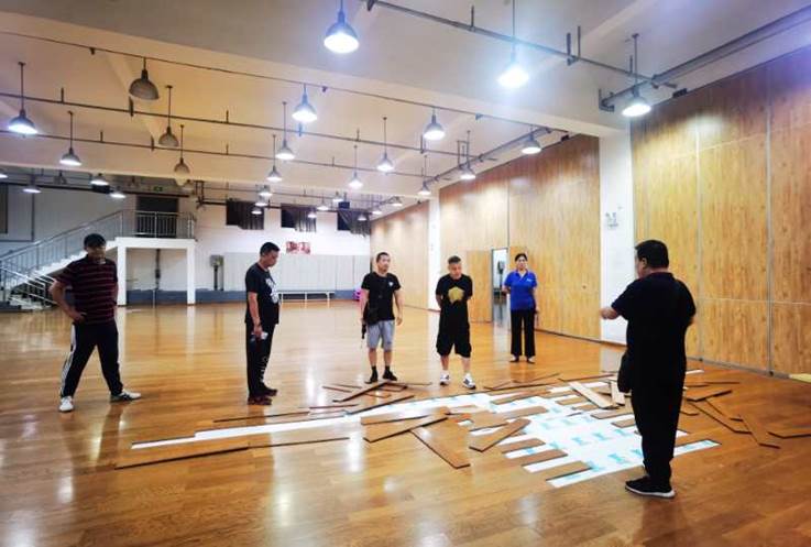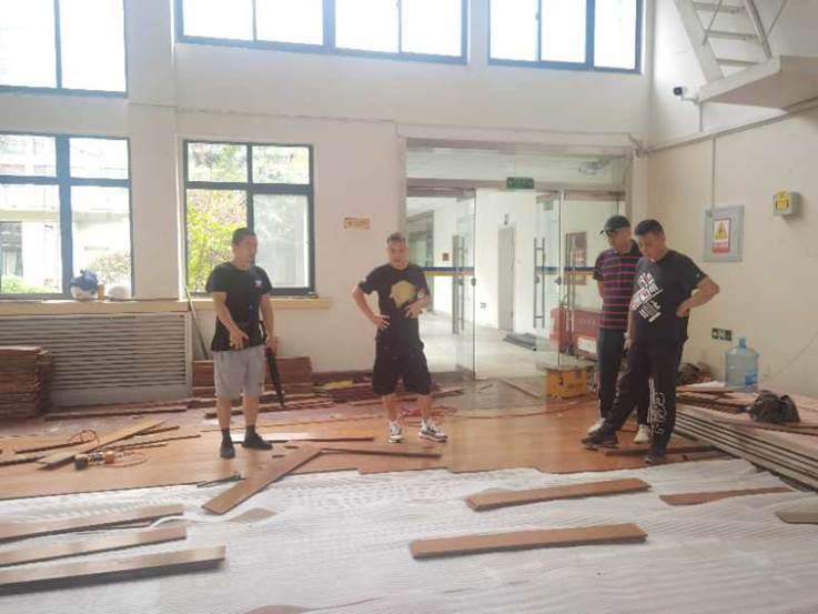 体操馆训练9人次(老师2人)开放锻炼 13人次 修缮人员8个;