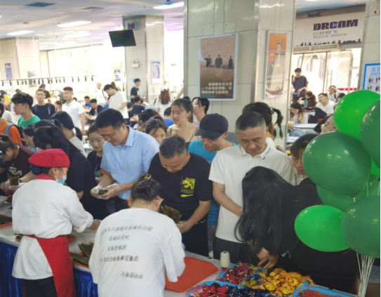 为庆祝建党100周年,弘扬中华民族的传统文化,在端午节到来之际,后勤管理处(集团)联合校学生会在学生餐厅举办“端午品香粽”师生互动活动,党委委员、副校长张卫国、后勤管理处(集团)处长许伟、后勤党总支书记宋国权及学生餐厅工作人员与同学们一起参与了本次活动。