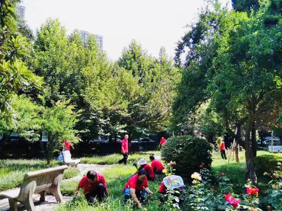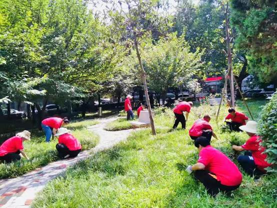 7月12日下午,后勤管理处(集团)物业中心组织员工对学校绿地内杂草进行及时清理,维护干净整洁的校园环境。