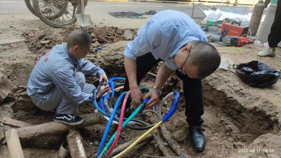 4月11日上午,由后勤管理处(集团)服务保障中心负责实施的家属区第三期电梯加建工程施工中,为保证电缆运行安全,加强电缆铺设检查保护工作,排除供电线路安全隐患,确保以更高标准保证电力安全,使电梯运行符合规范标准。
