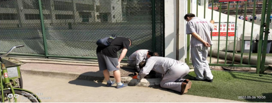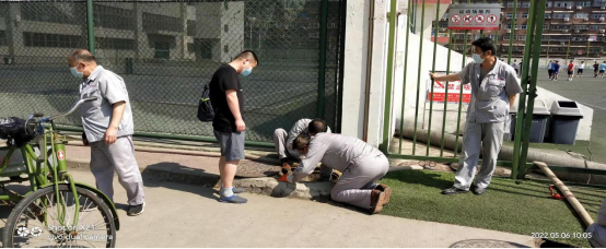 在各场馆水管网检查期间,保障中心工作人员发现足球场门口地下管网存在渗漏,立即启动应急维修预案,保障中心副主任姬永刚根据现场实际情况,与工作人员共同商议制定维修方案,及时开展维修工作。