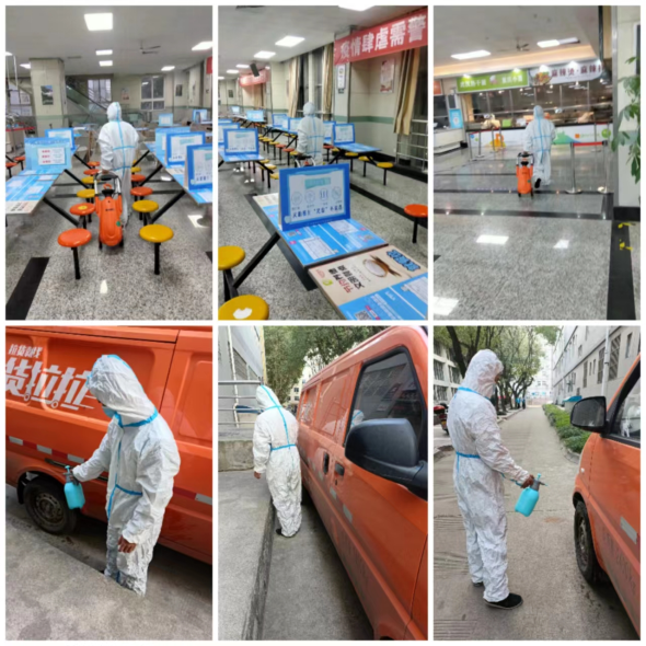 严格全面消杀,工作人员每日对学生公寓、教学楼、场馆(地)、学生餐厅、家属区等公共区域进行每日不少于2次的消杀、通风、清洁工作;学生餐厅严格就餐排队“一米线”,设置提示牌,为规避风险,严禁送货员下车卸货,并对原材料配送车辆进行消杀;做好垃圾分类,及时清运垃圾,有效避免病毒传播;加强对水电暖等设施设备检查,确保设施设备平稳运行,工作人员主动延长工作时间,坚持做到24小时在岗,及时解决师生所反映的问题,同时延长学生餐厅、场馆(地)、浴室开放时间,全力保障校内师生学习、生活安全有序。