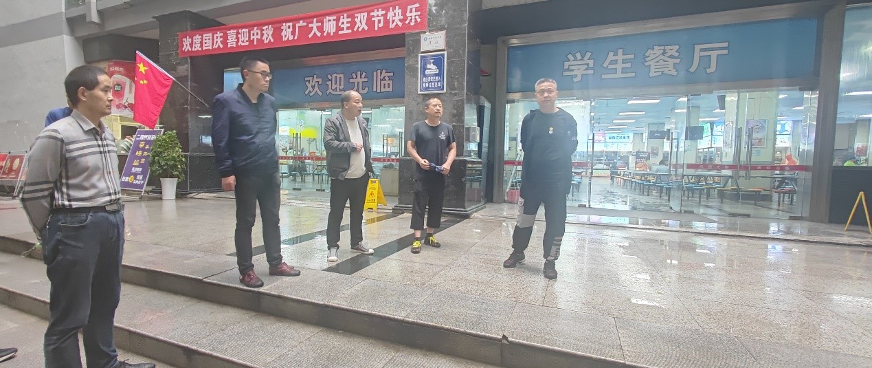 国庆、中秋将至,为做好节假日期间后勤保障工作,有效防范和避免安全事故的发生,9月27-28日,后勤管理处(集团)处长许伟带领各中心主任对鄠邑、含光两校区开展节前安全检查工作。 一行人分别对两校区学生公寓、场馆(地)、学生餐厅进行实地检查,重点对假期值班巡查、水电供应、消防及设施设备安全进行检查,确保放假期间各项保障工作落实落地,并对各中心工作人员致以节日问候。 后勤管理处(集团)处长许伟结合检查结果,对下一步工作进行再部署,他强调:1.严格规范管理,加强假期值班巡查工作;2.落实安全生产责任,树牢“安全第一”的理念,筑牢假期安全生产防线;3.进一步提高工作人员安全意识,提高应急处置能力,全力保障诸侯快讯师生度过一个安全祥和的国庆中秋假期。