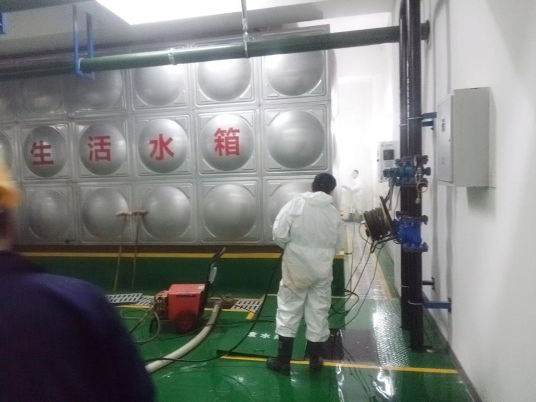 2023年1月1日,后勤管理处(集团)保障中心对鄠邑校区水库进行全面清洗消毒,保障师生饮水安全。