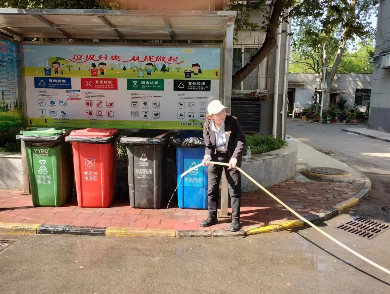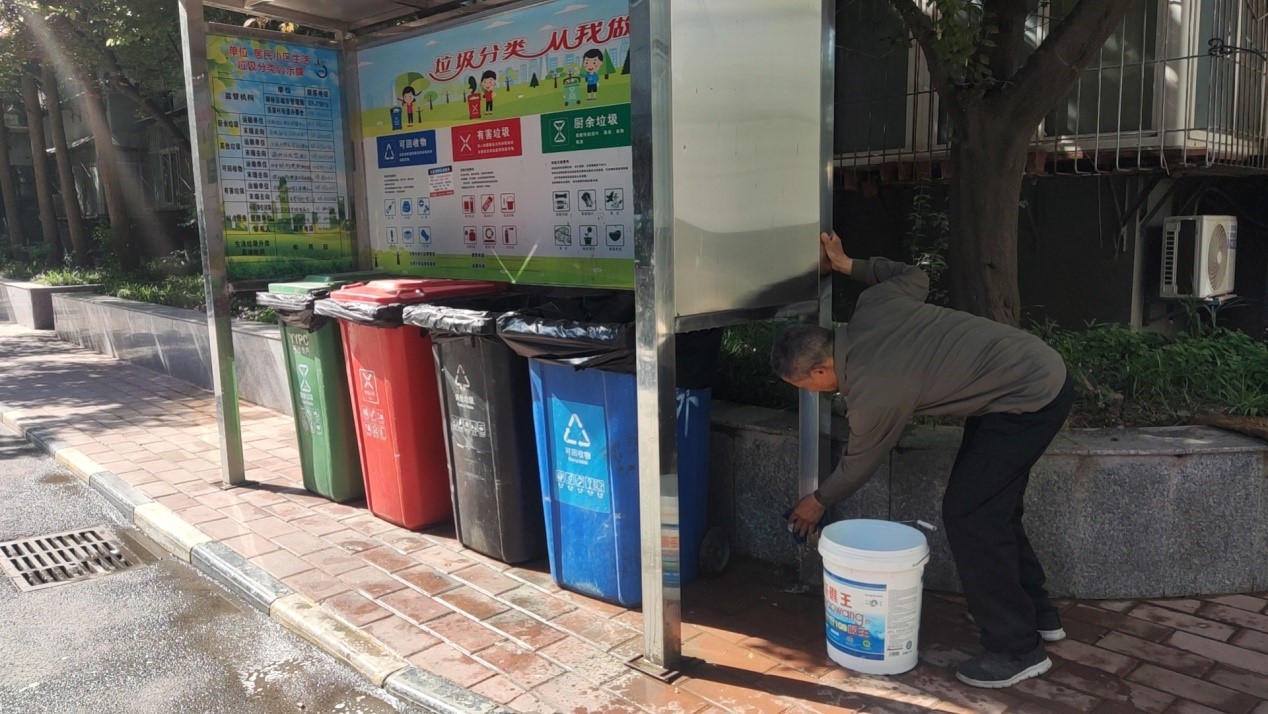 后勤管理处(集团)物业中心在夏季来临之际,针对蚊蝇繁殖和瓜果垃圾增多的情况,对校园及家属区的四色垃圾桶进行了清洗和消毒作业。保洁人员使用刷子和钢丝球彻底清理了垃圾桶的内外底部,并进行了除臭处理,有效降低了细菌滋生,保持了垃圾桶的清洁,提升了校园环境。