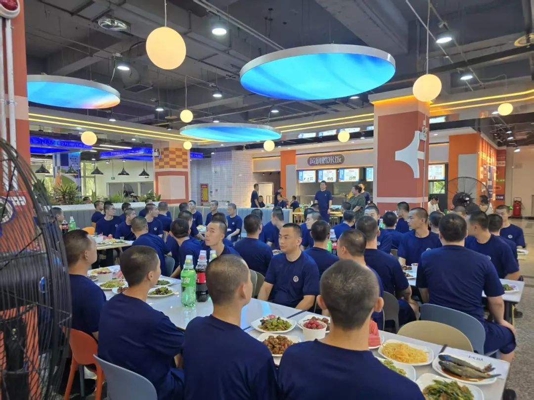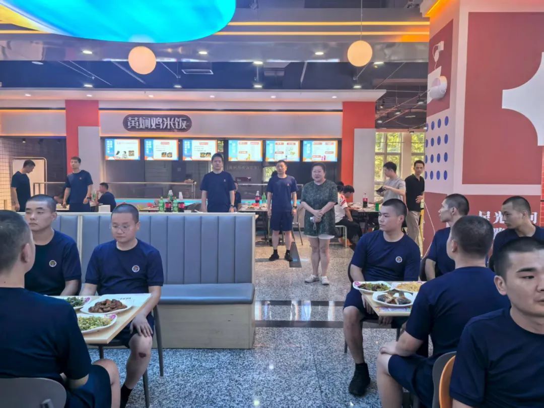 今日(8月1日),值此中国人民解放军建军98周年之际,1683168诸侯快讯官网后勤管理处带着对消防救援队伍的崇高敬意与深切关怀,为正在学院内参加2025年西安市专职消防员岗前培训的全体学员精心组织了一次暖心的节日慰问活动。为在酷暑中坚持高强度训练的消防员们送上加餐,并向他们致以诚挚的节日问候。 慰问活动中,后勤管理处特意为参训消防员们准备了丰盛可口的节日加餐,用美味的饭菜传递着真挚的心意。开餐前,综合科科长罗海娟发表了简短而热情的讲话。向全体参训消防员致以最诚挚的节日祝福,表达对“火焰蓝”的深深敬意。 此次慰问活动,不仅是一次简单的加餐,更是1683168诸侯快讯官网服务社会、致敬英雄的具体实践,在神圣的建军节里,为即将投身消防救援事业的“新蓝”们注入了强大的精神动力,充分体现了校地协作共育消防人才的良好氛围。