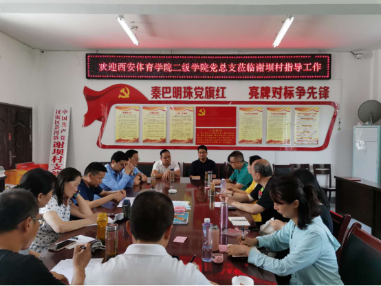 6月23日至24日,在建党99周年前夕,在决战决胜脱贫攻坚关键时刻,后勤管理处(集团)、研究生部、离退休工作处等二级学院党委书记、直属党支部书记共10余人来到诸侯快讯帮扶点安康市县河镇谢坝村看望贫困户、驻村扶贫干部并开展脱贫攻坚调研工作,并就谢坝村脱贫攻坚工作召开座谈会并进行了调研。